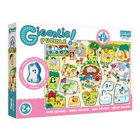 Puzzle Gigantic to największe puzzle na rynku! Po ułożeniu puzzli dzieci mogą bawić się zawartą w produkcie wysokiej jakości drewnianą figurką, nawiązującą tematycznie do motywu układanki. Po ułożeniu układanki powstanie obrazek o wymiarach 600x400mm. Obrazki w serii zostały zaprojekowane tak, aby można było je ze sobą połączyć w jeden ogromny obrazek, przedstawiający kolejno 4 różne motywy: miasto, zoo, plac bodowy oraz wieś.