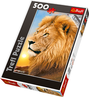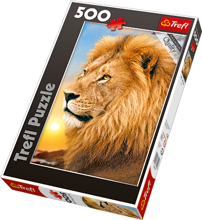Puzzle 500 elementów ze zdjęciem lwa. Po ułożeniu powstanie obrazek o wymiarach 34 x 48 cm. Wysoką jakość, nasycenie kolorów i bezpieczeństwo układania zapewnia kalandrowany papier odbijający światło, pokryty ekologicznymi farbami spożywczymi.