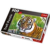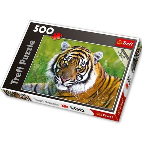 Puzzle 500 elementów z niesamowitym zdjęciem tygrysa. Po ułożeniu powstanie obrazek o wymiarach 48x34cm. Wysoką jakość, nasycenie kolorów i bezpieczeństwo układania zapewnia kalandrowany papier odbijający światło, pokryty ekologicznymi farbami spożywczymi.