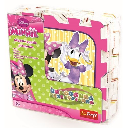 Układanka-puzzlopianka - MinniePuzzlo-pianki to duże, miękkie, kolorowe puzzle, z których można budować figury przestrzenne, np. kostkę lub pudełko. Mogą również posłużyć jako podkładka przy innych zabawach. Puzzlo-pianki można łatwo myć.Układanka-puzzlopianka uczy:- spostrzegawczości,- rozpoznawania kolorów i kształtów,- budowania figur przestrzennych,- zabawy z wyobraźnią.Pomysły jak można bawić się puzzlami:Połącz z dzieckiem wszystkie elementy puzzli i opowiedz, co się na nich znajduje.Zbuduj z puzzli figury przestrzenne, np. kostkę lub pudełko i wymyślcie wspólnie, jak można się nimi bawić.Ułożone puzzle mogą posłużyć jako podkładka przy zabawie plasteliną lub malowaniu. W przypadku zabrudzenia wystarczy je przetrzeć wilgotną ściereczką.Wiekod 2 lat