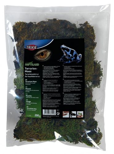 Trixie Reptiland Terrarien-Moss to ekologiczne podłoże jest idealne do zwiększenia wilgotności w terrarium i jest całkowicie bezpieczny dla żab, gadów oraz zwierząt ryjących lub kopiących. Bez dodatków chemicznych. Uzyskany z materiałów odnawialnych. Bardzo dobrze sprawdza się jako podłoże do zniosu oraz inkubacji jaj. Opakowanie zawiera 200 gram czyli około 3 - 4 litry.