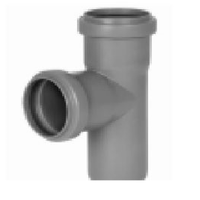 Trójnik PP do kanalizacji wewnętrznej o średnicy 50 mm i kącie 90 stopni. Kolor szary. Trójnik kanalizacyjny został wykonany z tworzywa takiego jak polipropylen (PP). Posiada zastosowanie do łączenia rur kanalizacyjnych, które odprowadzają ścieki i zanieczyszczenia z budynków. Służą do bezciśnieniowych kanalizacji wewnętrznych.