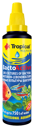 BACTO-ACTIVE zawiera wyselekcjonowane szczepy bakterii, które szybko i skutecznie rozkładają zgromadzoną w podłożu, filtrach i na elementach ozdobnych materię organiczną. Dzięki temu pielęgnacja akwarium staje się łatwiejsza. Preparat BACTO-ACTIVE w połączeniu z regularnymi podmianami wody sprawia, że nawet w „starych” akwariach warunki życia dla organizmów wodnych są doskonałe, a opiekun ma mniej pracy z usuwaniem zalegających resztek organicznych. Dzięki regularnemu stosowaniu preparatu woda jest czysta, przejrzysta i bezpieczna dla mieszkańców akwarium. Ponadto szczepy bakterii zawarte w preparacie BACTO-ACTIVE wspomagają działanie bakterii nitryfikacyjnych. Dzięki ich pracy w nowych akwariach szybciej osiedlają się bakterie nitryfikacyjne i w krótszym czasie ustala się równowaga biologiczna. Po zastosowaniu BACTO-ACTIVE syndrom nowego akwarium nie jest już problemem. ZASTOSOWANIE: BACTO-ACTIVE przeznaczony jest do stosowania w nowych zbiornikach z uzdatnioną wodą wodociągową, w ustabilizowanych akwariach, po podmianie wody lub czyszczeniu filtra oraz po leczeniu ryb preparatami bakteriobójczymi.