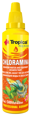 Preparat przeznaczony do dezynfekcji wyposażenia akwarystycznego: siatek, filtrów, akwariów itp., używanych lub stosowanych do kwarantanny i rozmnażania ryb. Przestrzeganie podstawowych zasad higieny w obrębie hodowli ryb zapobiega przenoszeniu patogenów pomiędzy akwariami. CHLORAMINA, wydzielając do wody aktywny chlor, skutecznie niszczy bakterie, pierwotniaki i niebezpieczne dla ryb grzyby, które mogą rozprzestrzeniać się za pośrednictwem wyposażenia akwarium. W celu neutralizacji chloraminy należy zastosować ANTYCHLOR w stosunku 1:1. Nie należy łączyć CHLORAMINY z innymi preparatami dezynfekującymi. SPOSÓB UŻYCIA: 10 ml / 100 l wody akwariowej, kąpiel około 24 godzin w akwarium bez podłoża, 10 ml na 2 l wody, do dezynfekcji sprzętu i siatek. UWAGA! Nie mieszać z żadnymi innymi preparatami akwarystycznymi! Produkt posiada atest PZH. Pozwolenie Ministra Zdrowia: 2647/05