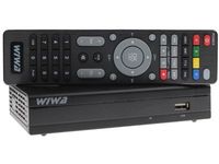 Tuner WIWA HD-80 Evo - to Tuner DVB-T Naziemnej Telewizji Cyfrowej. Nowoczesny dekoder o niewielkich wymiarach (155x80x30). Wykonany jest z czarnego matowego plastiku oraz z przezroczystego panelu przedniego. Dodatkowo został wyposażony w dwukolorową diode led informującą o stanie działania odbiornika. Umieszczenie zasilania na zewnątrz z tyłu obudowy przyczyniło się do zredukowania wymiarów oraz wagi tunera. Tuner został wyposażony we wszystkie wymagane złącza (złącze antenowe, wyjście dźwięku cyfrowego typu COAXIAL, złącze HDMI oraz SCART) oraz, co czyni go unikalnym wśród innych tunerów DVB-T, analogowe wyjście dźwięku stereo. Zaletą dekodera jest ultracienki pilot o wymiarach (175x45x6), który podnosi komfort użytkowania. Posiada intuicyjnie rozmieszczone przyciski o odpowiedniej wielkości. Dodatkowo po naciśnięciu jakiegokolwiek przycisku słyszymy charakterystyczne kliknięcie, co przyczynia się do funkcjonalności pilota.