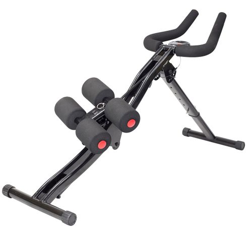 Wystarczy ułożyć kolana na rolkach pokrytych pianką, następnie złapać miękkie uchwyty