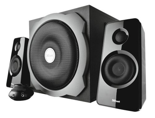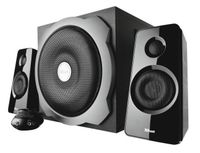 Zestaw głośników 2,1 z głośnikiem niskotonowym w drewnianej obudowie o całkowitej mocy muzycznej 60 W (120 W moc szczytowa)