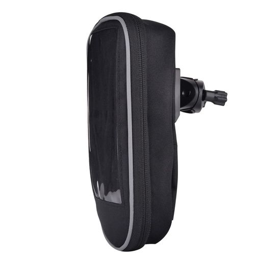 Uchwyt rowerowy na telefon z podręczną torebką na klucze, dokumenty, itd. montowany na kierownicę. Wykonany z wysokiej jakości wodoodpornego materiału, jest obrotowy i wygodny w użyciu. Przeznaczony dla telefonów o wielkości ekranu do 5,5''.