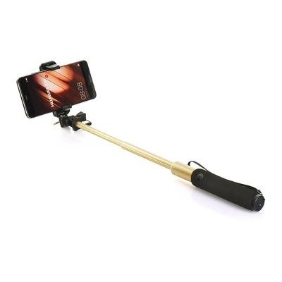 Po rozłożeniu ma 72cm długości, złożone niecałe 18cm, dzięki czemu jest bardzo poręczny i łatwo go przechować. Selfie stick łączy się z telefonem za pomocą 3,5mm, standardowego jack’a wpinając go do wejścia na słuchawki. W dolnej części urządzenia znajduje się piankowa rączka, gdzie umiejscowiony został przycisk, za pomocą którego można zrobić zdjęcie. Wbudowane pokrętło pozwala na regulację o 360 stopni.