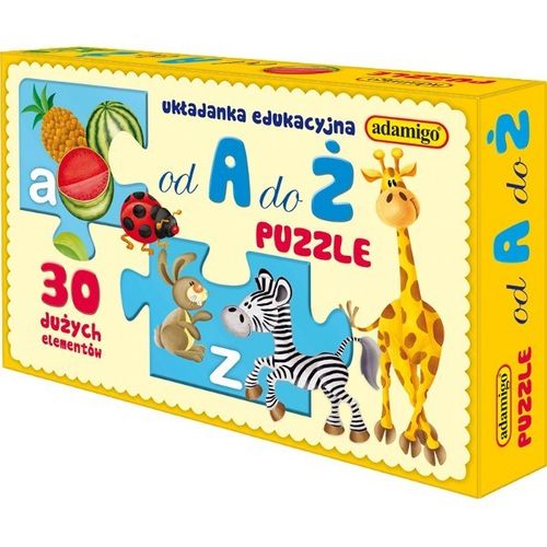PUZZLE OD A DO Ż układanka edukacyjna. W skład zestawu wchodzi 30 puzzli tworzących obrazek o wymiarach 50 x 34 cm.