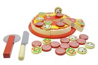 Kawałki pizzy oraz krążki „dodatków do pizzy” wyposażone w niewielkie pola z rzepem. Kawałki pizzy można złączyć w całość i „kroić”.