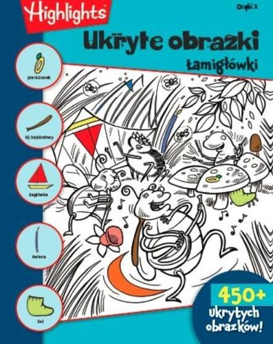 Ukryte obrazki zostały rozmieszczone na ilustracjach możliwie równo, aby dziecko mogło znaleźć jeden z poszukiwanych przedmiotów bez względu na to, gdzie akurat spojrzy.