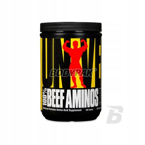 Suplement diety / Środek spożywczy zastępujący całodzienną dietę, do kontroli masy ciała. Nie stosować w przypadku uczulenia na którykolwiek ze składników produktu. Nie może być stosowany jako zamiennik bądź substytut zróżnicowanej diety. Nie należy przekraczać zalecanego dziennego spożycia. Zalecany jest zrównoważony sposób żywienia i zdrowy tryb życia. Produktu nie należy podawać matkom karmiącym oraz kobietom w ciąży. Przechowywać w suchym miejscu, w temperaturze pokojowej do 25°C. Chronić przed światłem. Przechowywać w miejscu niedostępnym dla małych dzieci. SKŁADNIKI AKTYWNE: 100% Beef Aminos Porcja: 3 tabl. Ilość porcji w opakowaniu: 66 Opakowanie: 200 tabl. Zawartość: w porcji: zaw: % RWS Wartość energetyczna 12kcal Białko 3g -- Profil aminokwasowy 100g białek wołowych L-Leucyna 3900mg L-Izoleucyna 1700mg L-Walina 2800mg L-Treonina 2100mg L-Lizyna 5100mg L-Fenyloalanina 230 mg L-Tryptofan 300mg L-Metionina 1200mg L-Histydyna 1200mg L-Arginina 7400mg Kwas L-asparginowy 6200mg L-Alanina 8800mg L-Cysteina 500mg Kwas L-glutaminowy 11300mg Glicyna 20100mg L-Hydroksyprolina 9700mg L-Prolina 11100mg L-Tyrozyna 900mg L-Seryna 3400mg Inne składniki: 100% kompleks aminokwasów wołowych (izolat białek wołowych, koncentrat albuminy wołowej, drobny wątroby z wołu Argentyńskiego), fosforan diwapnia, celuloza mikrokrystaliczna, kwas stearynowy, stearynian magnezu, lecytyna rzepakowa, glazura farmaceutyczna. * % Referencyjna wartość spożycia