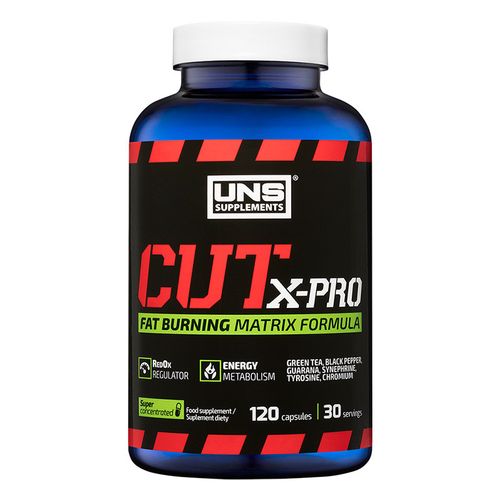 Suplement diety UNS Cut X-Pro to najwyższej jakości spalacz tłuszczu, którego skład bazuje wyłącznie na najlepszych, sprawdzonych związkach czynnych, których działanie wspomaga utratę zbędnych kilogramów w stosunkowo krótkim czasie! Suplementacja preparatem UNS Cut X-Pro przyspiesza redukcję tłuszczu zapasowego, wpływają jednocześnie korzystnie na rozwój beztłuszczowej masy. Dodatkowo, preparat UNS Cut X-Pro nasila wydzielanie ciepła przez organizm, wykazując działanie termogeniczne, oraz wspiera usuwanie zgromadzonej podskórnie wody i przyspiesza metabolizm. Wraz z UNS Cut X-Pro zgubisz kilogramy, jakich chcesz się pozbyć od dawna, i na nowo będziesz mógł cieszyć się szczupłą sylwetką!