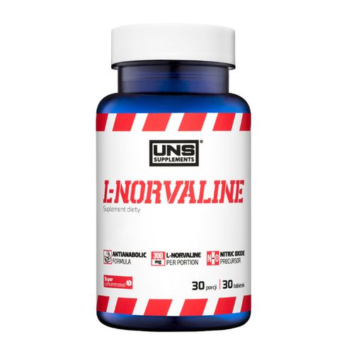 Suplement UNS L-Norvaline to najwyższej jakości norwalina bez zbędnych dodatków, której zastosowanie zapobiega stratom argininy w organizmie, dzięki czemu następuje nasilenie naturalnych właściwości tego związku, jak zwiększanie uwalniania tlenku azotu w naszym organizmie. Suplementacja UNS L-Norvaline pozwala zwiększyć stężenie NO w organizmie, dzięki czemu wpływa na lepszą pompę i usprawnia transport substancji odżywczych takich, jak kreatyna i aminokwasy do mięśni. W efekcie, mięśni otrzymują doskonałe warunki ażeby wzrastać, co można określić krótko jako lepsze przyrosty masy! Dodatkowo, suplement UNS L-Norvaline wspomaga poprawę wyników wytrzymałościowo-siłowych. UNS L-Norvaline jest polecany wszystkim, którzy poszukują wsparcia swojego organizmu w walce o lepsze wyniki sportowe!