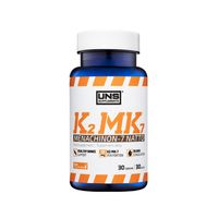 Suplement diety UNS Vit K2 MK7 to wysokiej jakości witamina K2, odznaczająca się dobrą przyswajalnością i wysoką aktywnością biologiczną, teraz dostępna w formie wygodnych tabletek! Preparat, dzięki tak zaawansowanemu składowi, pozwala dostarczać duże ilości witaminy K2 do organizmu, jednocześnie zapobiegając niedoborom opisywanego związku w diecie. Stała suplementacja UNS Vit K2 MK7 wspiera zdrowie kości i zębów, wzmacniając obie te struktury, jak również wpływa ona pozytywnie na stan układu krążenia, zapobiegając utracie elastyczności tętnic. Witamina K2, warunkując prawidłową mineralizację kości, wpływa na ich gęstość oraz dobry stan, dzięki czemu zapobiega ona osteoporozie i obniża ryzyko złamań. Ponadto, związek ten, umożliwiając wiązanie soli fosforanowo-wapniowych, ogranicza także zwapnianie tętnic i zapewnia elastyczność naczyń krwionośnych, wpływając dobroczynnie na układ krążenia. Produkt dostępny w postaci łatwych do połknięcia tabletek.