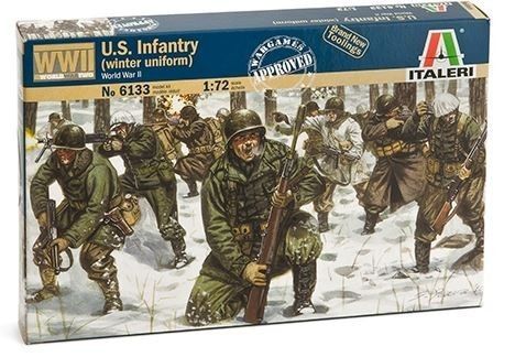 Zestaw zawiera plastikowe figurki żołnierzy amerykańskiej piechoty w zimowych mundurach.