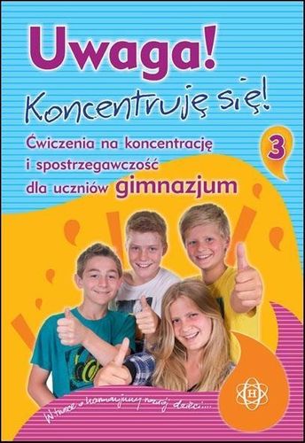 Ćwiczenia zaprezentowane w tej książce przeznaczone są dla uczniów gimnazjum. Służą przede wszystkim do doskonalenia koncentracji uwagi. Dodatkowo usprawniają wiele innych funkcji, między innymi percepcję wzrokową, koordynację wzrokowo-ruchową, orientację przestrzenną, pamięć i logiczne myślenie. Polecenia dobrane są tak, aby podtrzymywać zainteresowanie gimnazjalisty. Zadania polegają między innymi na wyszukiwaniu różnic, uzupełnianiu brakujących elementów, dobieraniu par, przerysowywaniu figur w określony sposób i rozwiązywaniu łamigłówek logicznych.