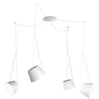 Wewnętrzna struktura: Lampa wisząca - zwis pająk. Średnica górnej / dolnej części sufitu 15,4 / 22,4 cm Wysokość sufitu 14,3 cm Ilość punktów światła: 4 Zasilanie: sieciowe ~230 V Styl: nowoczesny Kolor: biały Pomieszczenie: salon, jadalnia, kuchnia, sypialnia, biuro Faktura: Wystawiam fakturę VAT Gwarancja: 24 miesiące Certyfikaty: CE Żarówka w komplecie: nie