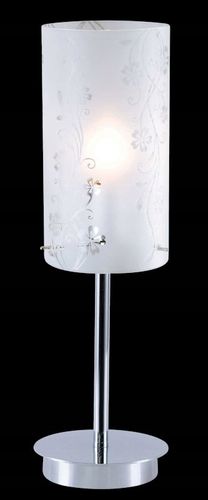 Materiał wykonania: Stop metali, szkło Kolor: Chrom Średnica: 13 cm Wysokość: 48 cm Gwint: E27 Moc maksymalna: 60W Ilość źródeł światła: 1