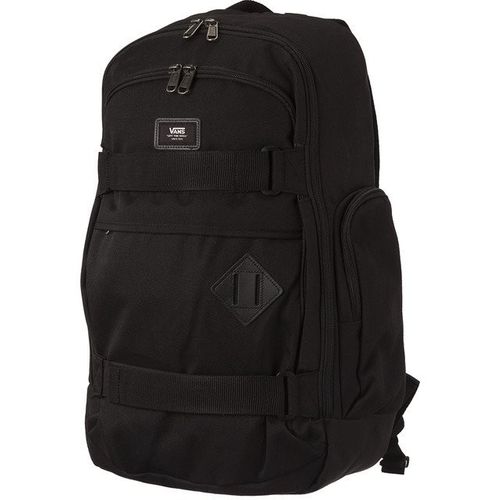 Pojemny plecak - do szkoły i nie tylko!Oto przed Tobą genialny, pakowny plecak Vans Vans Transient II Skatepack BLK w uniwersalnym, czarnym kolorze. Plecak pomieści wszystko to, co zapragniesz zabrać ze sobą do szkoły, na uczelnię, wycieczkę, czy na deskę. Główna komora zapinana na zamek i dodatkowe dwie kieszenie z przodu plecaka zmieszczą naprawdę wiele rzeczy! Z boku znajdują się dodatkowe kieszonki zapinane na suwak. Wewnątrz znajduje się komora na laptop, a na zewnątrz paski mocujące, do których przyczepisz np. deskę. Plecak jest uszyty z materiału poliestrowego o bardzo trwałych włóknach, to gwarancja jego wytrzymałości. Usztywnienie pleców zwiększa komfort, a naramienne szelki, wypełnione gąbką mają regulowaną długość i również są bardzo wygodne. Szelki redukujące odczuwalny nacisk na ramionaMniejsza kieszeń na froncie zapinana na suwakPojemna komora głównaUsztywniane plecy Boczna kieszonka np. na butelkę z napojeDodatkowa kieszeń z przodu Uchwyt do trzymania plecaka w dłoni Komora na laptop wewnątrz plecakaPaski mocujące
