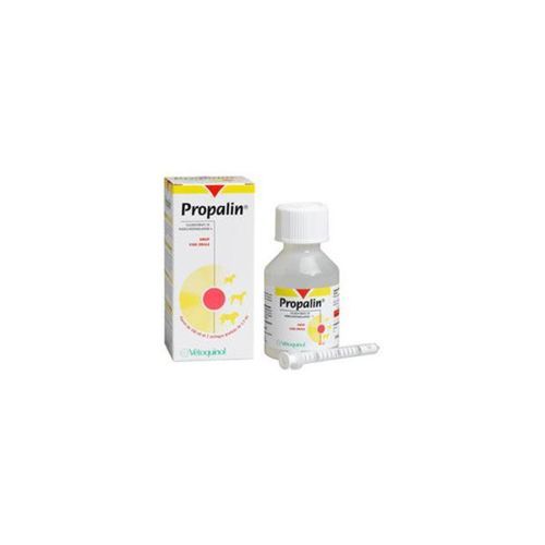 Wskazania: Leczenie nietrzymania moczu związanego z niewydolnością zwieracza cewki moczowej u suki. Skuteczność wykazano tylko u suk po usunięciu jajników i macicy. Przeciwskazania: Stosowanie preparatu Propalin nie jest stosowne w leczeniu behawioralnych przyczyn niewłaściwego oddawaniu moczu. Nie podawać pacjentom leczonym nieselektywnymi inhibitorami oksydazy monoaminowej. Interakcje Interakcje z innymi produktami leczniczymi i inne rodzaje interakcji: Powinna być zachowana ostrożność przy podawaniu preparatu Propalin? syrop wraz z innymi lekami sympatykomimetycznymi, lekami antycholinergicznymi, trójcyklicznymi lekami antydepresyjnymi lub specyficznymi inhibitorami oksydazy monoaminowej typu B. Nie powinien być stosowany u pacjentów leczonych nieselektywnymi inhibitorami oksydazy monoaminowej. Dawkowanie i sposób podawania: Zalecana dawka Propalin wynosi 1 mg/kg masy ciała 3 razy dziennie w karmie.