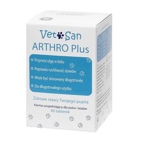 Vetosan ARTHRO Plus stanowi połączenie wszystkich ważnych dla organizmu zwierzęcia substancji występujących powszechnie w stawach oraz w tkance łącznej. Zwiększa mobilność stawów, spowalnia a nawet zatrzymuje proces degeneracji chrząstki stawowej, pomaga w jej regeneracji oraz łagodzi przebieg zapaleń i uśmierza ból. Może być podawany zapobiegawczo, przed pojawieniem się problemów związanych z aparatem ruchu, jak też podczas ostrych dolegliwości (takich jak zapalenie i ból) oraz w stanach przewlekłych. Vetosan ARTHRO Plus zaleca się stosować u wszystkich psów i kotów mających problemy z aparatem ruchowym, przy dysplazji stawu biodrowego, osteoartrozie oraz podczas rekonwalescencji po urazach stawów i ścięgien. Jest przeznaczony dla psów w każdym wieku, szczeniąt wszystkich ras, psów sportowych i pracujących a także dla kotów.