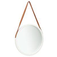 To modne lustro wiszące gwarantuje eleganckie nawiązanie do wystroju w stylu vintage w nowoczesnych wnętrzach. Duże, okrągłe lustro oprawione jest w trwałe, naturalne drewno paulowni i zawiesza się je na kołku za pomocą gładkiego, miękkiego w dotyku paska ze sztucznej skóry. Pasek umożliwia powieszenie lustra na dowolnej wysokości, oferując większą swobodę w użyciu tej dekoracji.