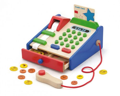 Jestem w sklepie z rodzicami,jadę wózkiem z zakupami,a w tym wózku są warzywa,i wędliny i pieczywa zabawa w sklep – któż z nas się w nią nie bawił gdy pogoda nie dopisywała i musieliśmy bawić się w domu drewniana kasa sklepowa od viga wprowadzi twoje dziecko w ekscytującą zabawę jako kasjer lub sprzedawca w supermarkecie, sklepie z odzieżą, czy też kwiaciarni. zestaw zawiera skaner, kartę kredytowa, 40 monet i rolkę taśmy do drukowania paragonów. gra rozwija wyobraźnię i fantazję, wspomoże naukę liczenia, nauczy jak posługiwać się pieniędzmi, wzbogaci umiejętności społeczne.wykonane z najwyższej jakości drewna bukowego, pokryta farbami przyjaznymi dziecku.wymiary: 180 x 180 x 95 mmean: 6934510596927