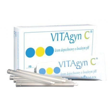 Stosować jeden raz dziennie, najlepiej na noc przed położeniem się do łóżka, przez 6 kolejnych dni. Dla utrzymania efektów kuracji stosować 1-2 razy na tydzień przez 12 tygodni lub dłużej. VITAgyn C krem zawiera 6 jednorazowych aplikatorów ułatwiających wprowadzenie kremu do pochwy.