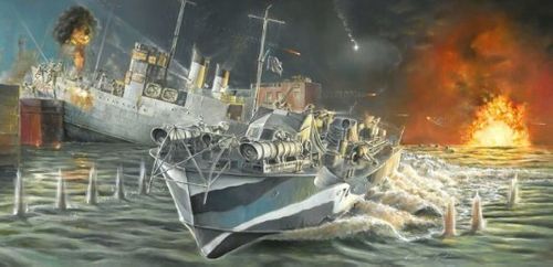 Zestaw zawiera plastikowy model okrętu do sklejania.