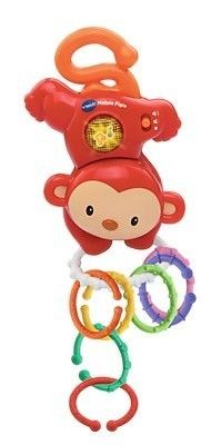 V-Tech Grzechotka Małpie Figle- Potrząsanie grzechotką uruchamia zabawne zwroty i dźwięki.- Kolorowe krążki umożliwiają montaż grzechotki do różnych uchwytów.- Świecący przycisk muzyczny wygrywa piosenki, uczy nazw części ciała oraz kolorów.- Poruszanie głową małpki rozwija umiejętności motoryczne.- Dwa poziomy regulacji dźwięków.- Wygodny uchwyt ułatwia trzymanie zabawki w małych rączkach. Zabawka wymaga baterii AAA.Wiekod 3 miesięcy