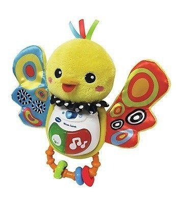 VTech - Grzechotka Wirek-Ćwirek- Posiada szeleszczące skrzydełka z miękkiego materiału.- Główka ptaszka wykonana jest z pluszu.- Przycisk muzyczny na brzuszku odtwarza wesołe melodie, piosenki oraz ciekawe zwroty.- Możliwość wyprania miękkich elementów po zdjęciu modułu elektronicznego.- Wygodny uchwyt ułatwia trzymanie zabawki w małych rączkach.Zabawka wymaga baterii AAA.Wiekod 3 miesięcy
