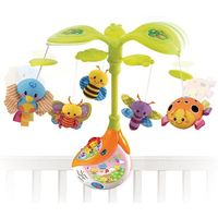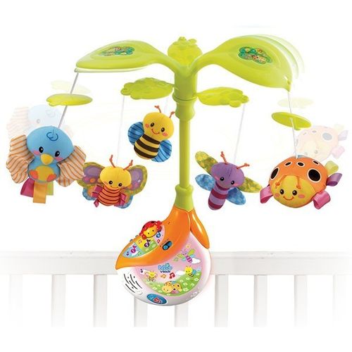 Karuzela do łóżeczka marki VTech wygrywa 40 relaksujących melodii i spokojnych odgłosów natury. W trakcie odtwarzania muzyki światło na panelu mieni się delikatnymi kolorami. Liście delikatnie wirują wokół, a pięć kolorowych, pluszowych maskotek obraca się przykuwając uwagę dziecka. W tym czasie muzyka pomaga ukołysać maluszka do snu. Możliwość ustawienia czasomierza pozwala rodzicom wybrać odpowiedni czas odtwarzania melodii.Cechy:- Karuzela odtwarza 40 melodii. Odgłosy natury; melodie kołysanek; spokojne, kojące dźwięki wybrane specjalnie dla najmłodszych dzieci.- Odtwarzanej muzyce towarzyszą delikatnie migające światła. - Kolorowe, pluszowe maskotki zawieszone na liściach karuzeli kręcą się dookoła przykuwając uwagę dziecka.- Dzięki możliwości ustawienia czasomierza (10, 15 i 20 minut) rodzice sami mogą ustawić czas odtwarzania.- Karuzela posiada czujnik, który uruchamia melodie kołysanek, gdy niemowlę zacznie płakać.- Załączone pasy mocujące zapewniają bezpieczne przytwierdzenie karuzeli do łóżeczka.Wiekod 0 miesięcyWymiaryop. 40,6x33x10,4 cm