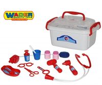 Fantastyczna zabawa dla małych lekarek i lekarzy! Walizka po otwarciu ukazuje bogatą zawartość, stanowiącą kompleksowe wyposażenie każdego "małego lekarza". Od dziś każdy maluch pokocha wizyty u lekarza!