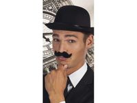 Wąsy gentleman. Czarne, dokładnie przystrzyżone i uczesane wąsy getlemana. Z lekko podkręconymi do góry końcówkami. Przebierz się za eleganckiego gentlemana na bal karnawałowy.