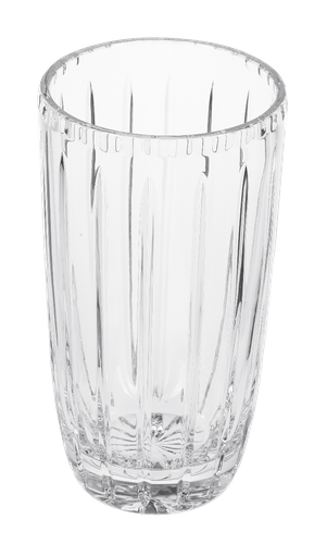 Kryształowy, zaokrąglony wazon z kolekcji Quartzo o wysokości 20cm. Pionowe żłobienia na transparentnym krysztale dodają mu nowoczesnej elegancji. Kryształowy wazon to odrobina praktycznego luksusu w Twoim wnętrzu.