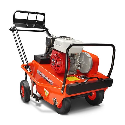 Główne zalety spalinowego aeratora bębnowego Weibang WB516AH: Wysoka wydajność aeracji (do 2700m²/h) dzięki zastosowaniu japońskiego silnika użytkowego Honda GX160 z 3-letnią gwarancją i wysokim momentem obrotowym oraz bębnowym systemem nakłuwania trawnika, z 30 wymiennymi kolcami pustymi (5 pierścieni na bębnie, po 6 kolców na pierścieniu); Skuteczną i sprawną aerację zapewnia optymalnie dostosowana waga aeratora WB516AH wynosząca 173,5kg oraz szerokość robocza na poziomie 53cm; Wygodną pracę aeratorem gwarantuje system napędu dźwigniowego z możliwością regulacji prędkości posuwu maszyny lewarkiem obrotów silnika; Niezawodność pracy i zwiększoną wytrzymałość zapewniają łańcuchowy napęd bębna, stalowe koła pasowe oraz przekładnia w kąpieli olejowej; Łatwy transport i przemieszczanie dzięki solidnym, gumowanym kołom stalowym. Nazwa produktuAerator bębnowy Weibang WB516AHMarka silnikaHondaModel silnikaGX 160Typ silnikaspalinowy czterosuwowyMoc silnika (KM)5Pojemność silnika (cm³)163Pojemność zbiornika oleju (L)0.6Pojemność zbiornika paliwa (L)3.1RozruchręcznySzerokość robocza (cm)53Głębokość robocza min - max (cm)0 - 7Biegi w przód1Waga (kg)173.5Gwarancja konsument24 miesiące, 36 miesięcy (silnik)