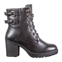 Stylowe botki damskie na platformie o wysokości 2 cm, mają stabilny obcas typu słupek o wysokości 5 cm, dzięki czemu są wygodne i świetnie sprawdzą się jako uzupełnienie codziennych stylizacji. Buty te mają cholewki sięgające za kostkę wykonane z ekologicznej skóry i wnętrze wyścielone miękkim kożuszkiem.