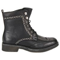 Czarne wiązane workery Sds to buty idealne na jesień ozdobione dżetami w rockowym stylu. Oprócz sznurowania posiadają też zamek błyskawiczny z boku. Mają niski, grubszy obcas wygodny na każdą pogodę. Będą dobrze prezentowały się w stylizacjach rockowych jak i klasycznych i casualowych. Wykonane z wysokiej jakości skóry ekologicznej.