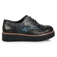 Wiązane półbuty w kolorze czarnym Kylie to niebanalne obuwie, idealne zarówno do codziennego użytkowania, jak i wyjście na wieczorną imprezę. Buty doskonałe będą do użytkowania w sezonie wiosna/lato. Obuwie wykonano z wysokiej jakości, oddychającej tkaniny, dzięki czemu w takich butach nawet przez cały dzień można czuć się bardzo komfortowo.