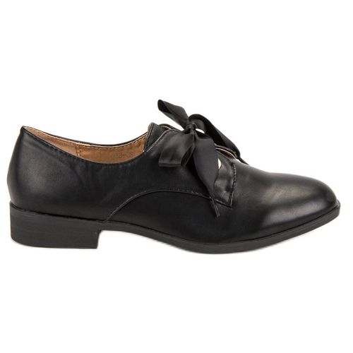 Czarne półbuty to absolutna klasyka i doskonały wybór na przeróżne okazje. Klasyczny charakter tych butów doskonale przełamuje jednak wstążka, która stanowi bardziej kobiecy zamiennik sznurowadeł. Dzięki wykonaniu ich z wysokiej jakości skóry ekologicznej, buty przez długi czas zachowują nienaganny wygląd.