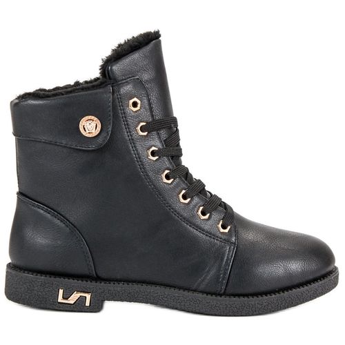 Piękne i wygodne czarne workery to idealny wybór dla kobiet ceniących sobie komfort i wygodę, ale chcących pozostać trendy. Buty wykonane są ze skóry ekologicznej. W środku ocieplane są futerkiem, dzięki czemu nadają się na okres jesienno-zimowy. Z boku u góry mają ozdobny emblemat, na dole również znajduje się dekoracyjny element.