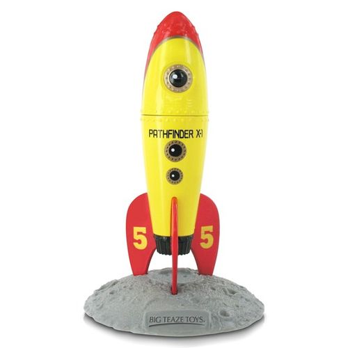 Utrzymany w stylu retro, ma postać rakiety która da ci kosmiczną przyjemność.
