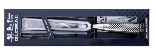 Europejski widelec marki Global do porcjowania mięsa, ostrze jest wykonane z jednego kawałka stali, z unikalną wypukłą krawędzią zapewniającą niezrównaną wydajność dwa ostrza świetnie trzymają pieczeń, aby się nie zsunęła.