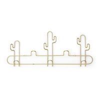 Wieszak ścienny Desert marki Umbra to minimalistyczny dodatek do przedpokoju, łazienki, a także do pokoju dziecka. Wykonany z metalowego drutu, pokrytego tytanową warstwą w złotym kolorze, wieszak został ukształtowany na kształt kaktusów, jakie można spotkać na pustyni w Arizonie. Montowany jest do ściany za pomocą wkrętów i ma udźwig do 13,6 kg. Wysokość: 18