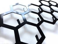 Wieszak dekoracyjny przedstawia kształty geometryczne jakim są heksagony. Modnie połączone, w ciekawym stylu podobnie jak w innym naszym wieszaku CELLSup - ten natomiast jest poziomym wieszakiem.