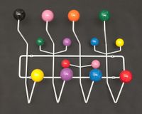 Intrygujący wieszak wykonany jest ze stalowych, lakierowanych na biało,prętów zakończonych drewnianymi kuleczkami w różnych kolorach. Jest doskonałą ozdobą każdego wnętrza. Powiesisz na nim wszystkie swoje rzeczy!,Prezentowany produkt jest inspirowany projektem wieszaka Hang it all.