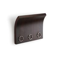 Ścienny wieszak magnetyczny holenderskiej firmy Umbra, wykonany ze sklejki. Wygięta w łuk półka umożliwia odłożenie korespondencji, a wbudowany w,płytkę magnes pozwala na zawieszenie kilku standardowych kluczy. Do zestawu dołączone 3 stalowe kółka na klucze i kołki rozporowe