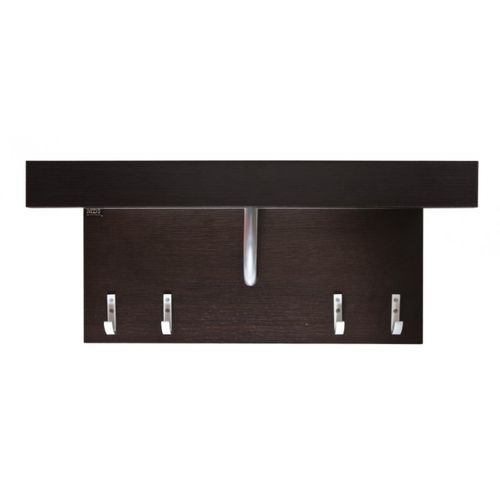 SatiloWieszak ścienny do przedpokoju Satilo z 4 zawieszkami, uchwytem na wieszaki ubraniowe i półką, np. na okrycie głowy. Satilo to doskonałe uzupełnienie oferty komód i szafek na buty do przedpokoju oferowanych Państwu w naszym sklepie. Wymiary: 27 wys X 60 szer X 28 gł [cm] - STANDARD Materiał: Płyta laminowana o gr. 18 mm, obrzeże PCV 1 mm